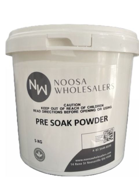 Pre Soak Powder is a heavy duty detergent powder designed specially for nappy washing and stain removal from a multitude of surfaces. It is formulated to attack heavy stains and soiling of clothes and materials prior to the wash cycle. Pre Soak Powder will bleach and remove stains from linen, cutlery, plates and cups without damage. Its available oxygen (generates hyrdrogen peroxide) content ensures complete sanitation. Pre Soak Powder is safe to use on coloured linen.