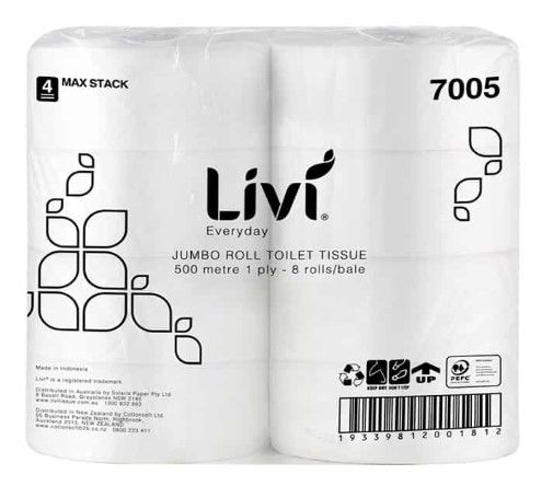 Livi Basics 7005 1 Ply Jumbo Toilet Roll (Ctn 8)