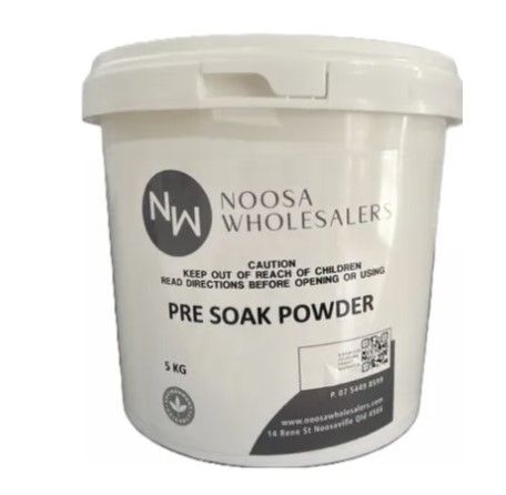 Pre Soak Powder is a heavy duty detergent powder designed specially for nappy washing and stain removal from a multitude of surfaces. It is formulated to attack heavy stains and soiling of clothes and materials prior to the wash cycle. Pre Soak Powder will bleach and remove stains from linen, cutlery, plates and cups without damage. Its available oxygen (generates hyrdrogen peroxide) content ensures complete sanitation. Pre Soak Powder is safe to use on coloured linen.