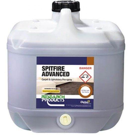 As a pre-spray it is suitable for use on regular and new low profile style carpets and upholstery to remove greasy, stubborn stains. Suitable for wool, wool blend and olefin and satin treated nylon fibre carpets. SPITFIRE ADVANCED rinses freely and allows more dirt and greasy soil to be removed leaving it fresh and brilliantly clean.