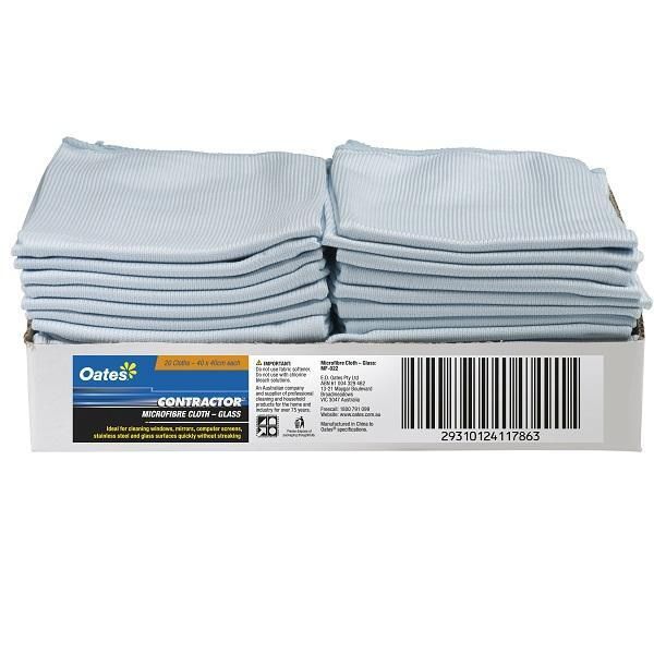 Contractor microfibre glass cloth can be used wet or dry to trap and remove particles. Woven cloth design allows easy removal of greasy fingerprints from windows, glass and mirrors while leaving the surface streak free.