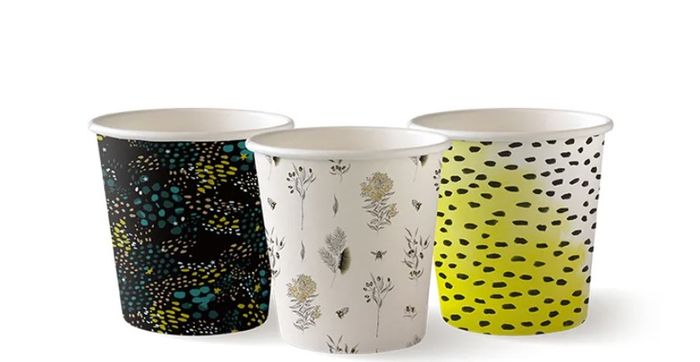 - These sustainable coffee cups are printed with non-toxic, environmentally-friendly water or soy-based inks.