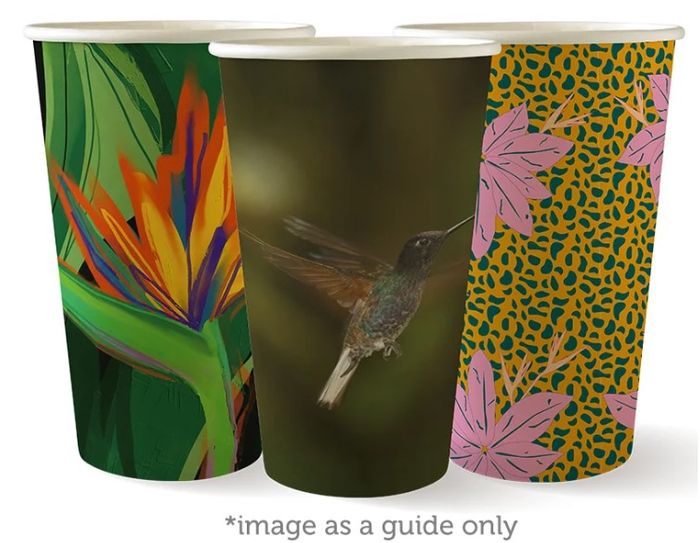 - These sustainable coffee cups are printed with non-toxic, environmentally-friendly water or soy-based inks.