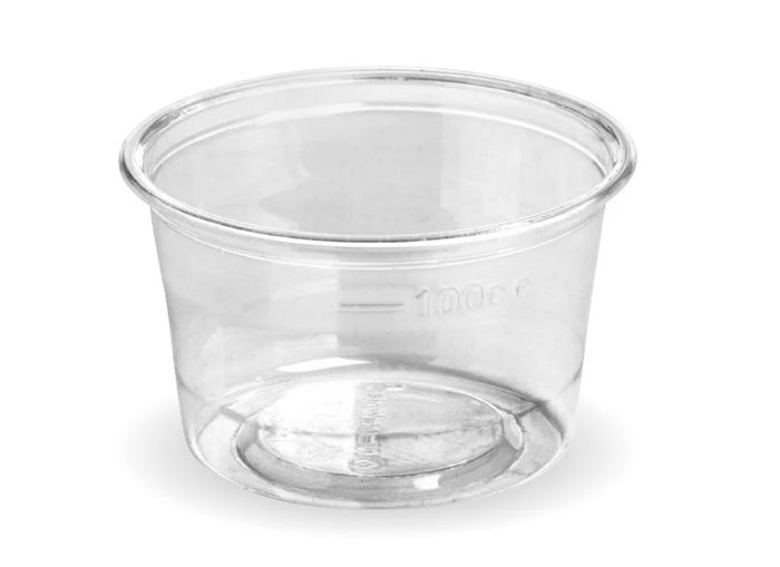 BioCup 140mL Sauce Pk/50 (Ctn 1000) - Note this sauce cup will also fit inside Biopak Raised Lid with no hole (item) 18018  suitable for keeping granola separate to bottom cup for example