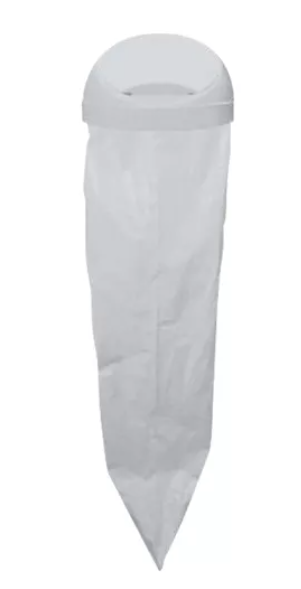 Degradable Sanitary Disposal System. The self-deodorising cartridges seal in sanitary waste and are quick and easy to replace. It removes the need for any complicated cleaning. Consists of a disposable cap, modesty flap and liner that are completely non-toxic and degradable.