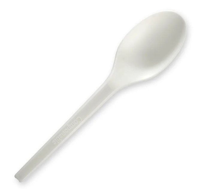 6" compostable spoon is made from a plant-based bioplastic, produced from a rapidly renewable starch. This bioplastic spoon has a smaller carbon footprint than conventional plastic. This spoon is certified industrially compostable.