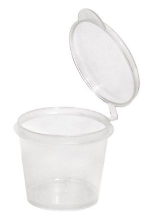 Use our 25ml polypropylene sauce containers with hinged flat lids for the ultimate in workflow streamlining and convenience. No more looking for lids - they're attached to the bases via a convenient durable hinge. The lids are a simple snap fit onto the bases. Additionally, the containers stack very well. These sauce containers are perfect for busy restaurants, and also perfect for childcare centres wanting to put paints for the kids into small containers with integrated lids.