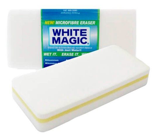 - White Magic microfibre sponge on one side, with reinforced centre and other side that sticks to holder.