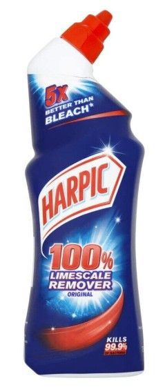 Harpic 100% Limescale Remover Original is the perfect solution for limescale. Its powerful formula removes all limescale, while simultaneously killing 99.9% of bacteria. 100% Limescale Remover will leave your toilet free of limescale and smelling fresh.
