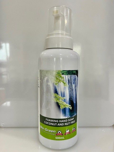 Bio-Green Liquid Foaming Hand Soap is manufactured using gentle cosmetic and plant based wetting agents and moisturisers. This product is made from ingredients that have been verified as free of coconut, peanuts and tree nuts - great for indiviuals who have allergies to nuts and coconut based ingredients. Bio-Green Foaming Hand Soap is pH balanced - the skin has a natural, slightly acidic moisture lauer which inhibits the growth of harmful bacteria. Typical alkaline soap products destroy this layer, leaving your skin feeling dry.