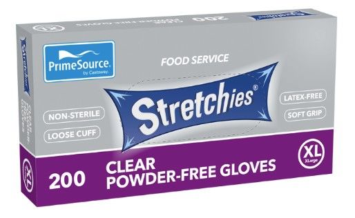 - Stretchies gloves are made with a stretchable material offering both durability and softness. Easy to put on and easy to take off, Stretchies are ideal for foodservice or food processing applications.