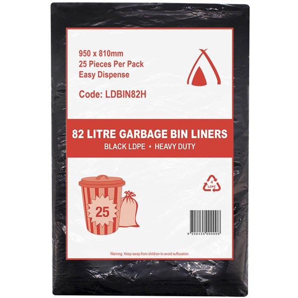 Black Heavy Duty Garbage Bin Liners 82L Pk/25 (Ctn 250)