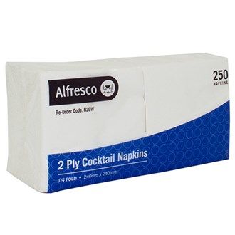 Alfresco Cocktail Napkins White Pk/250 (Ctn 2000)