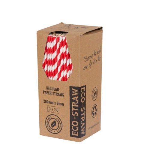 Regular Paper Striped Straws Red & White Pk/250 (Ctn 2500)