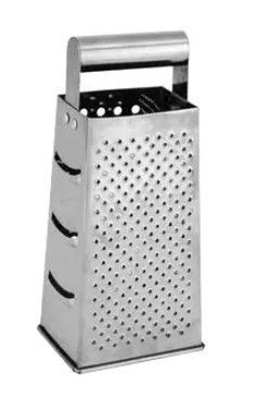 A simple but effective way to grate cheese or vegetables with this versatile Stainless Steel Grater. The 4 side design allows you to choose a finer or coarser grate depending on the recipe, so you can always have the right grate consistency in your foods. This grater is made from stainless steel for easy cleaning and durability, while the plastic handle provides a firm grip and added safety. The Stainless Steel box grater is dishwasher safe so it doesn't need to be hand washed - saving staff time.