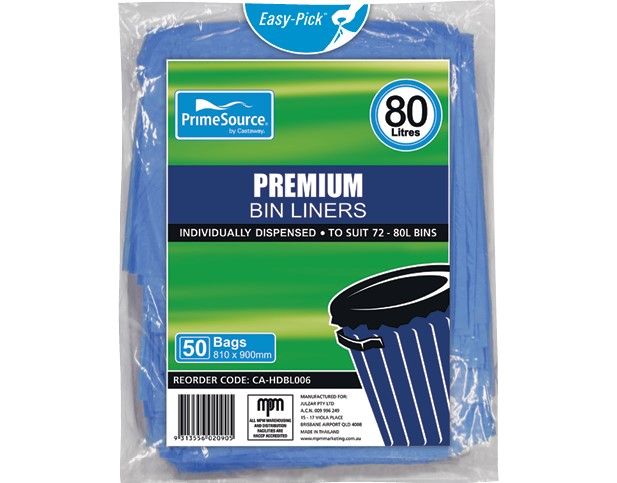 Blue All Purpose Garbage Bin Liners 80L Pk/50 (Ctn 500)